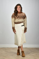 Ons model Lise is 1,73m en Lise heeft maat 36/S/27. Deze rok valt normaal op maat
