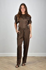 Zie hier de Isabel Marant top Karlita in bruin, een verfijnd ontwerp met normale pasvorm. Gemaakt van 54% viscose en 46% acetate voor ultiem comfort. Perfect te combineren dankzij zijn veelzijdige stijl. Model Lise is 1,73m lang en draagt maat M. Artikelnummer: HT0568FA-C1J04I.