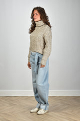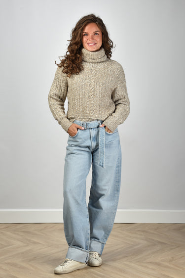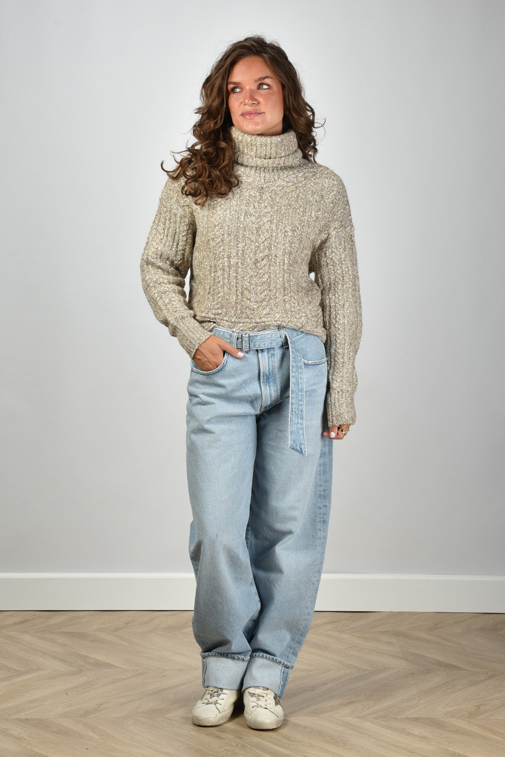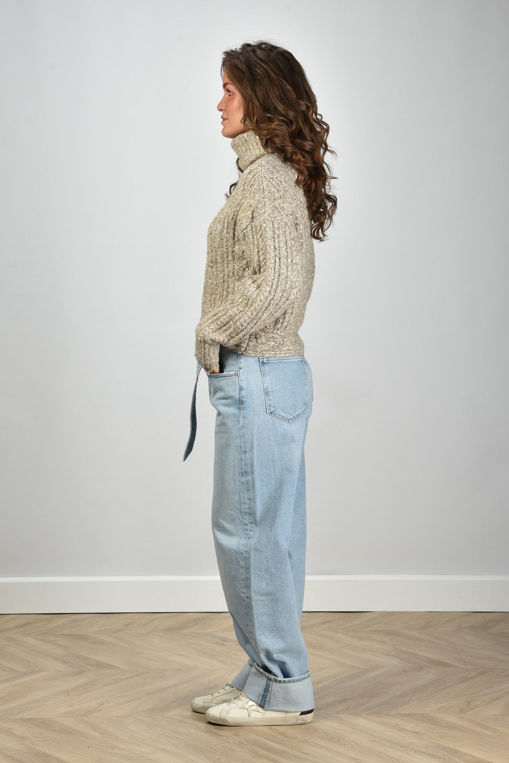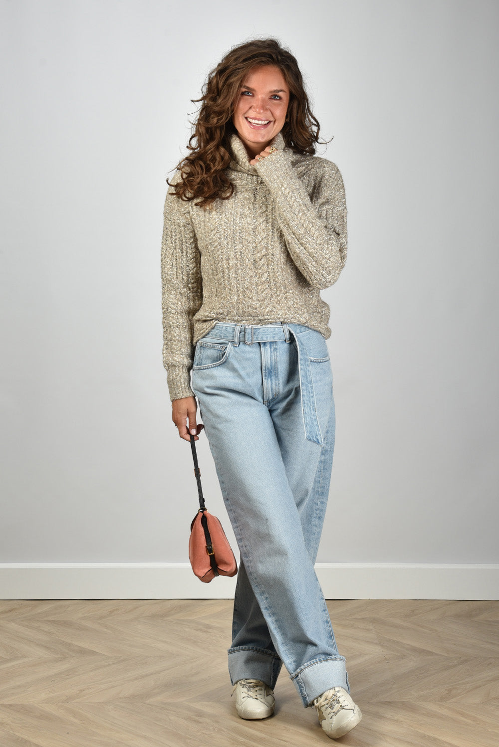 Ons model Lise is 1,73m en Lise heeft maat 36/S/27. deze trui valt normaal op maat