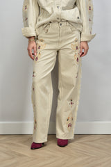 Isabel Marant Marant Etoile embroidered broek Maella PA0504FA-C1H02E ecru