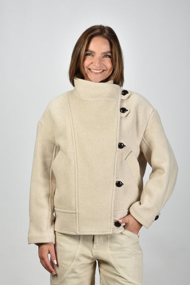 Isabel Marant jas Hanis hoge kraag en knoopsluiting ecru