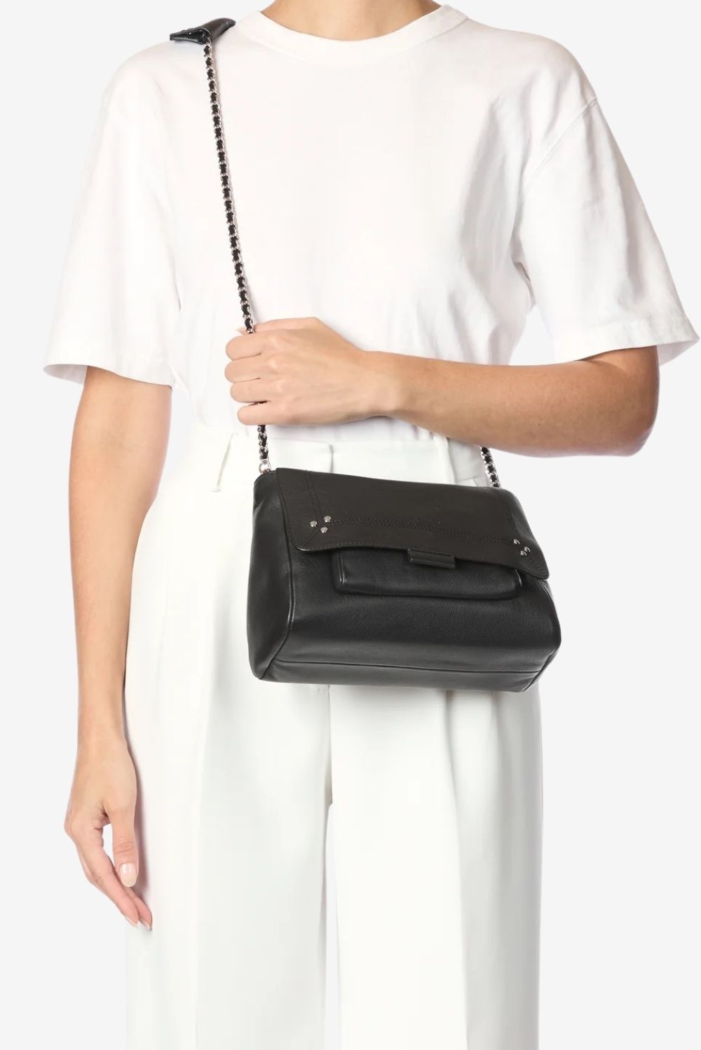 Jerome Dreyfuss crossbody Lulu M calfskin zwart leer met zilveren details