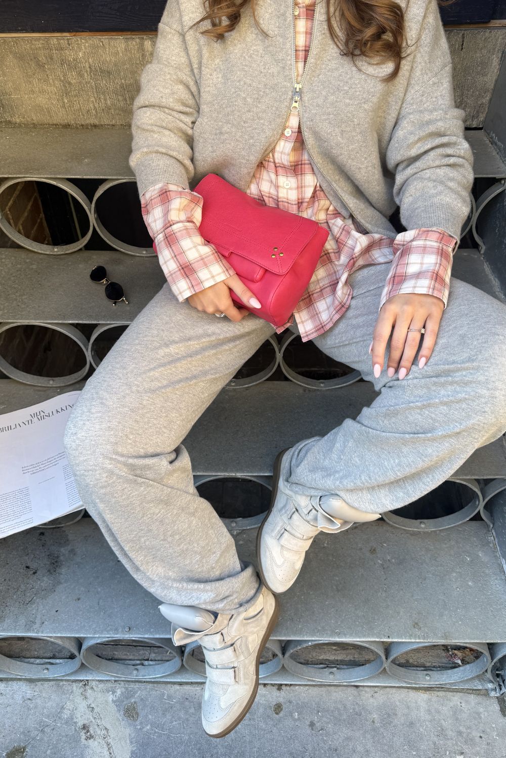 De crossbody Lulu M van Jerome Dreyfuss trekt meteen de aandacht in heldere jacinthe. Het soepele lamsleer voelt zacht maar stevig aan en krijgt met de tijd alleen maar meer karakter. De brede flap is afgewerkt met kleine studs in de hoeken en een opvallende band met knoopsluiting bovenop. Voorop zorgt het gouden kettingdetail voor een subtiele glans. Binnenin is de tas gevoerd met katoen, praktisch en netjes afgewerkt. Draag haar over de schouder of crossbody tijdens een diner of een dag in de stad. Van dezelfde serie is er ook de Jerome Dreyfuss crossbody Lulu M moka, een mooie aanvulling voor wie een zachtere tint zoekt.