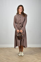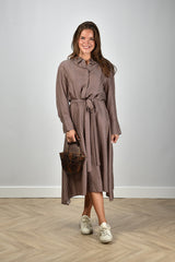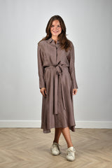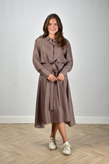 Joseph midi-jurk Orlan met knoopsluiting en print bruin