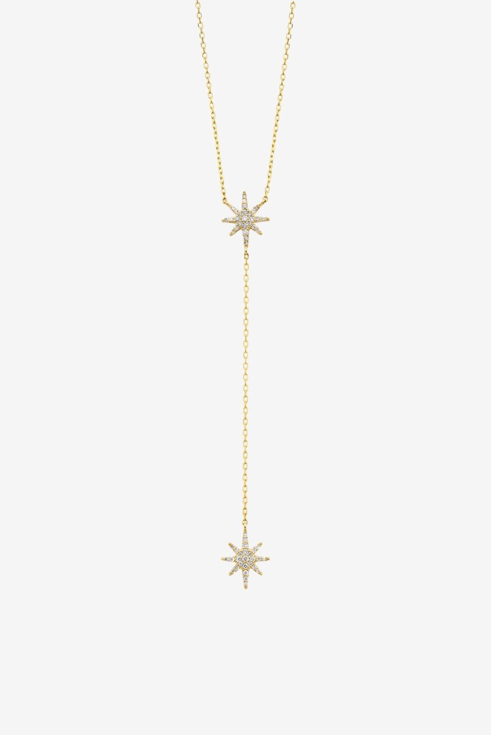 Just Franky ketting Universe Dubbele Diamant Ster geelgoud