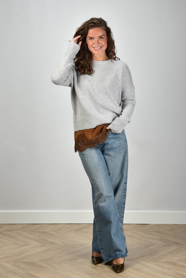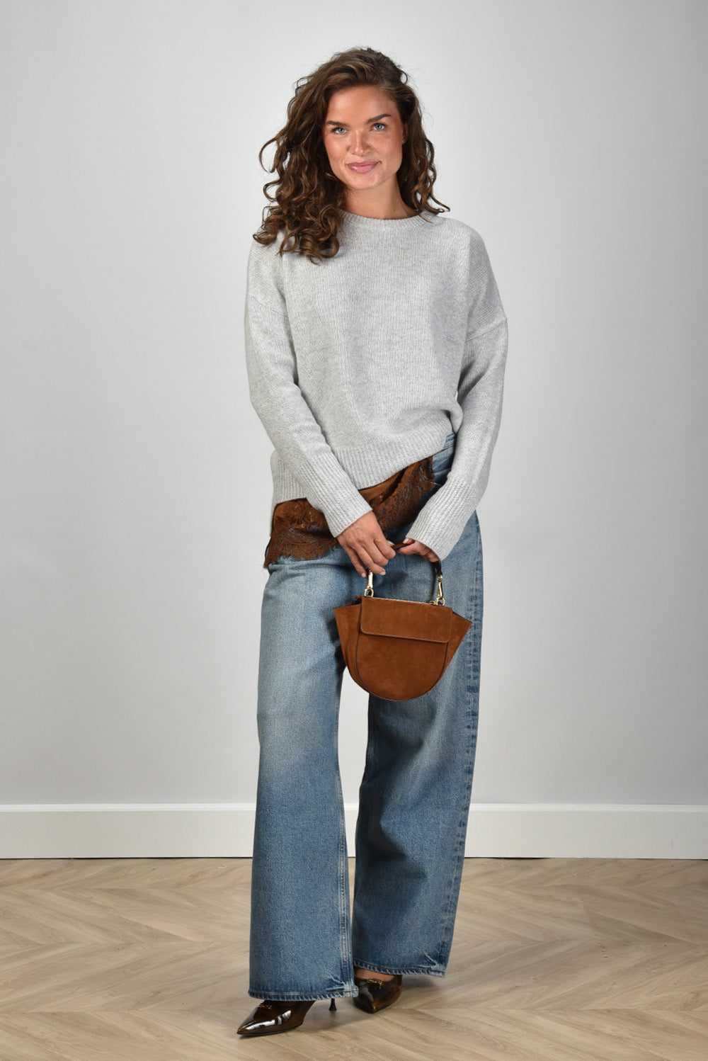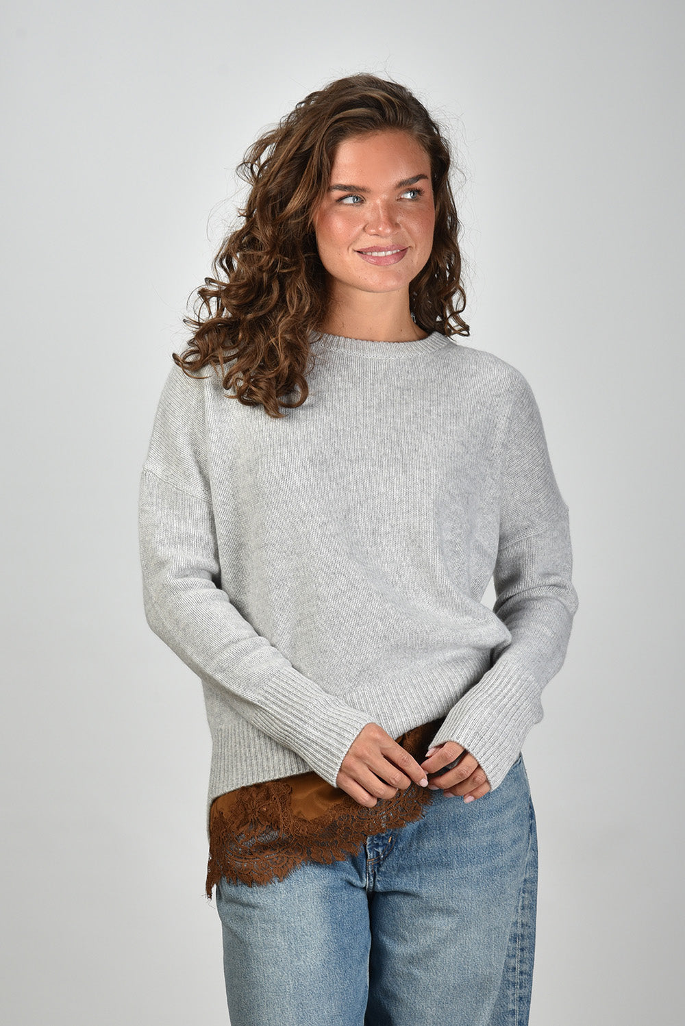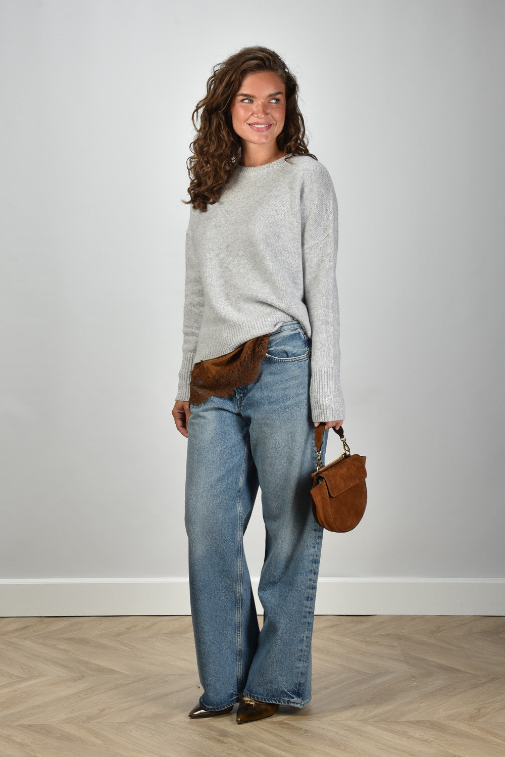 L'Ame de Julie cashmere trui Julia met ronde hals grijs