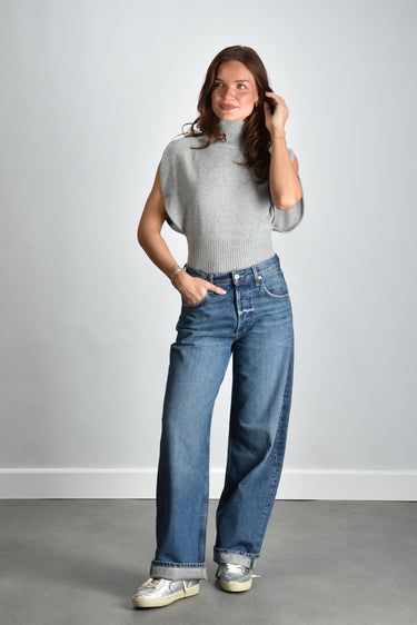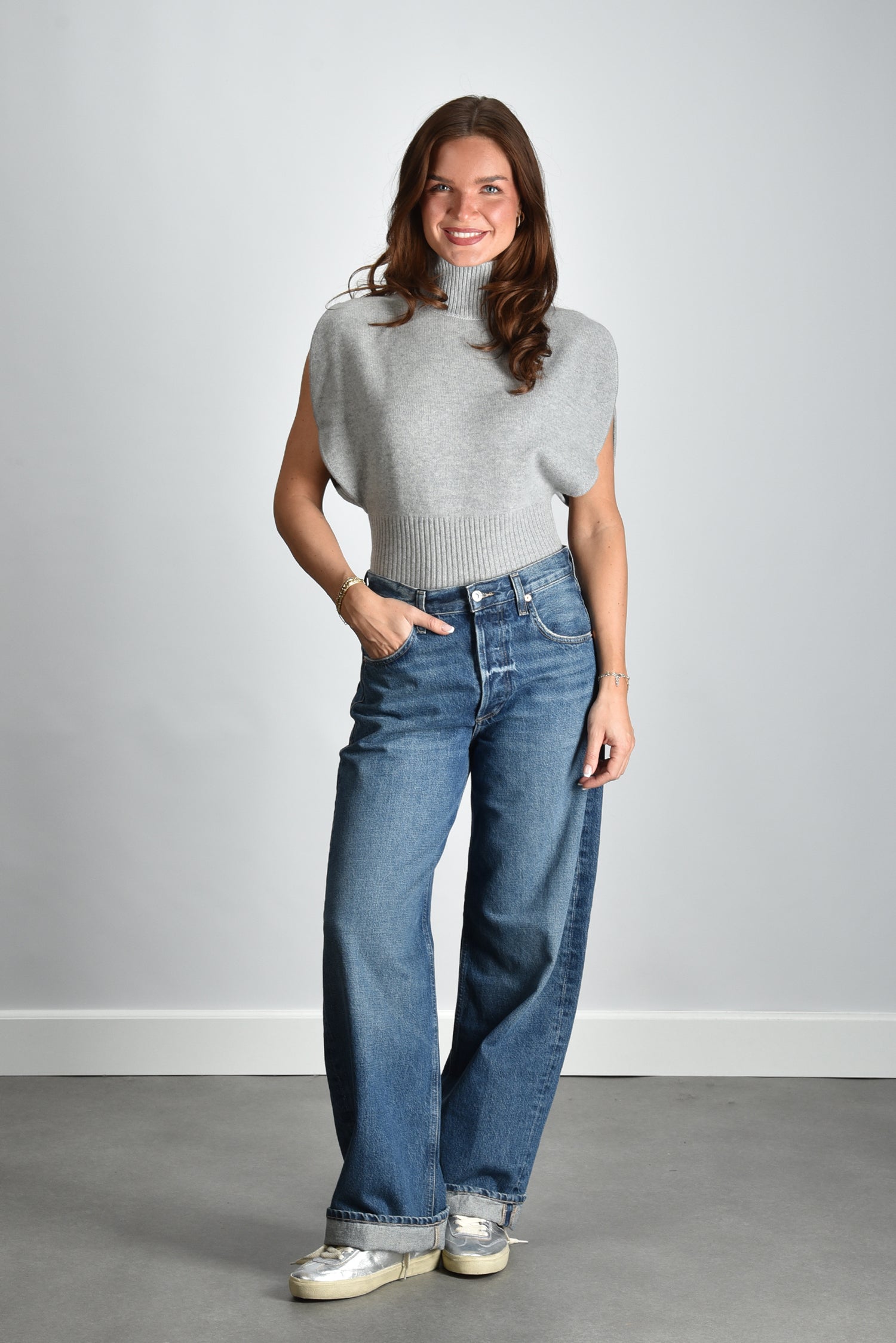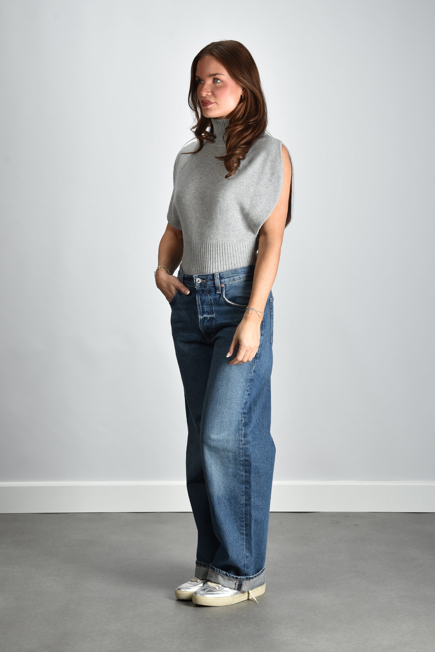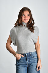 Lisa Yang cashmere top Zaya hoge halslijn grijs