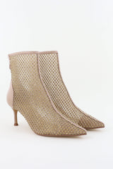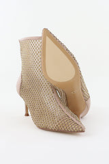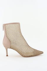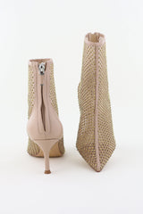 Lola Cruz enkellaarsjes met mesh en strass steentjes nude