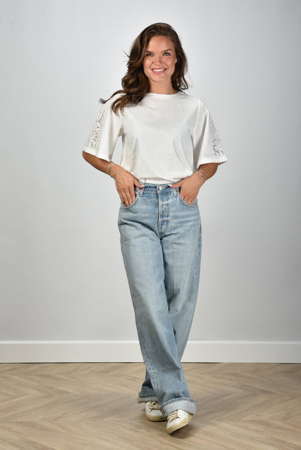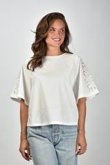 Max Mara t-shirt Elodia met gehaakt patroon op de mouwen white