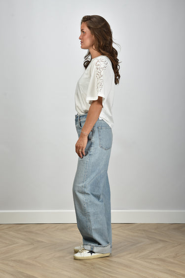 Ons model Lise is 1,73m en Lise heeft maat 36/S/27. Dit t-shirt valt normaal op maat