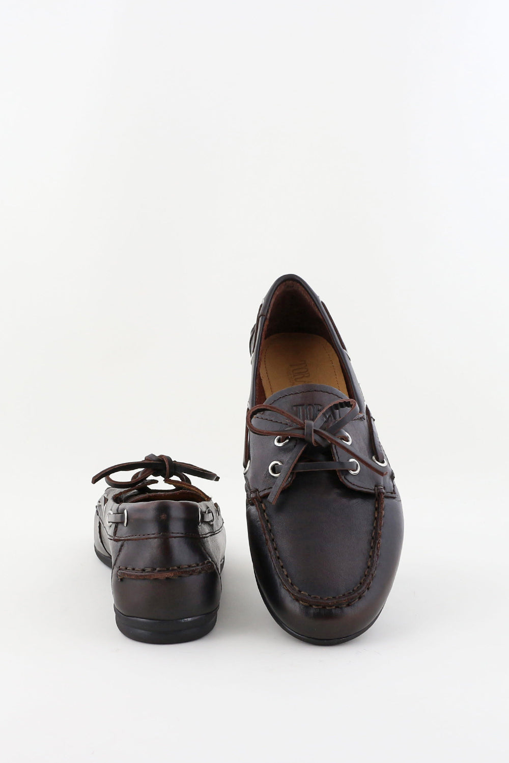 De loafers marron bruin van Toral hebben die stevige, gladleren structuur die meteen klasse uitstraalt. Het leer voelt vol aan, met een lichte glans die mooi meebeweegt met het licht. De veters geven het ontwerp een subtiele twist, net even anders dan de klassieke instapper. De warme marron tint, ook wel CUIR marron genoemd, is makkelijk te combineren met zowel lichte als donkere tinten. Ze vallen normaal op maat, dus je kiest gewoon je gebruikelijke schoenmaat. Toral staat bekend om het vertalen van trends naar draagbare schoenen met een eigen signatuur. Deze loafers vormen daar het perfecte voorbeeld van: ingetogen, sterk van lijn en gemaakt om vaak te dragen. Combineer ze eens met een soepelvallende pantalon of bij een rechte jeans voor een nette, ontspannen look.