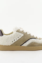 Nubikk sneakers Ray Owen Studs met teddy vacht en lakleer creme