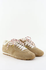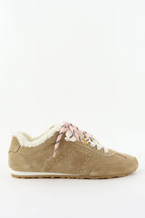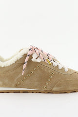 Nubikk sneakers Billy Lou Fur gevoerd met bont en studs als details beige