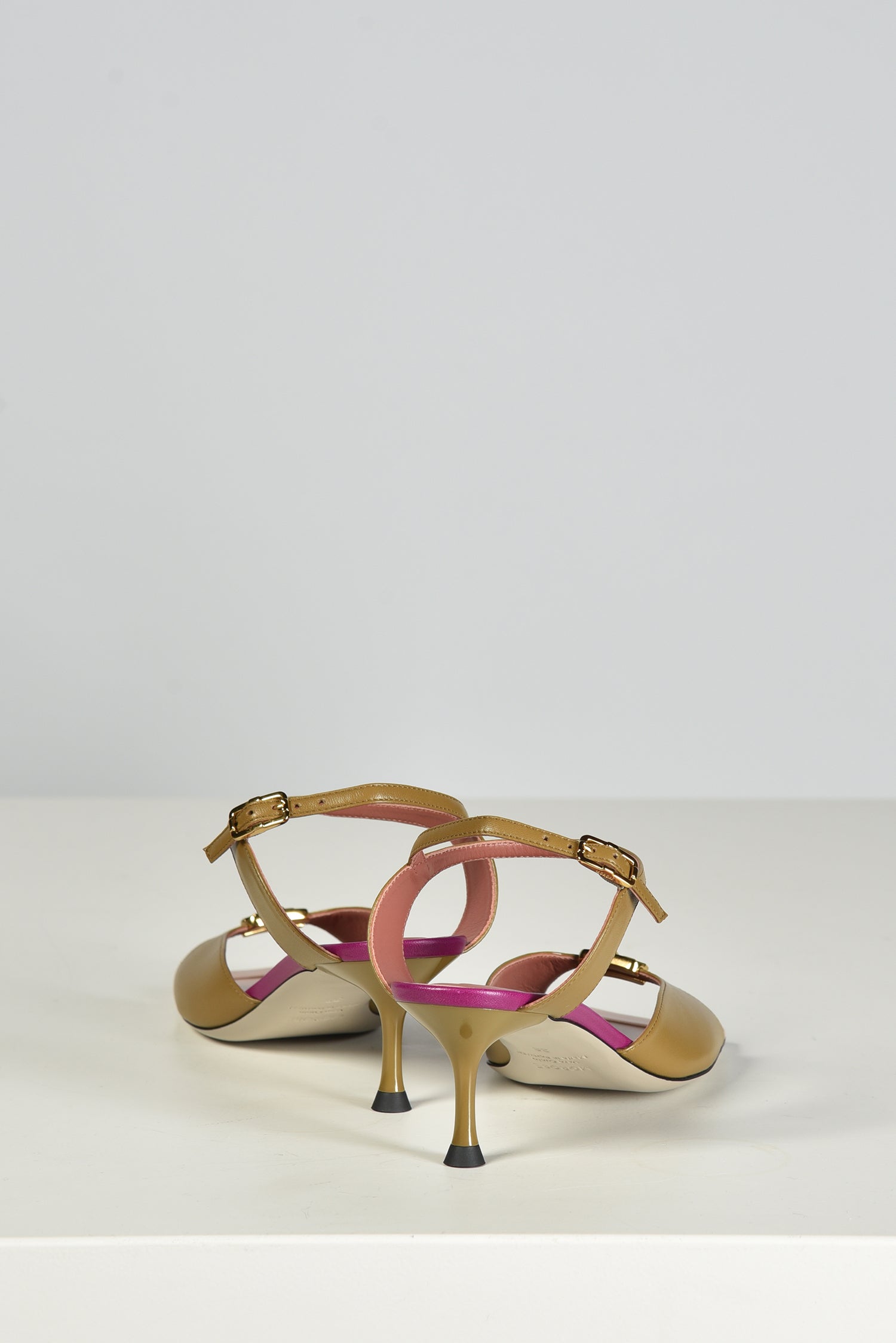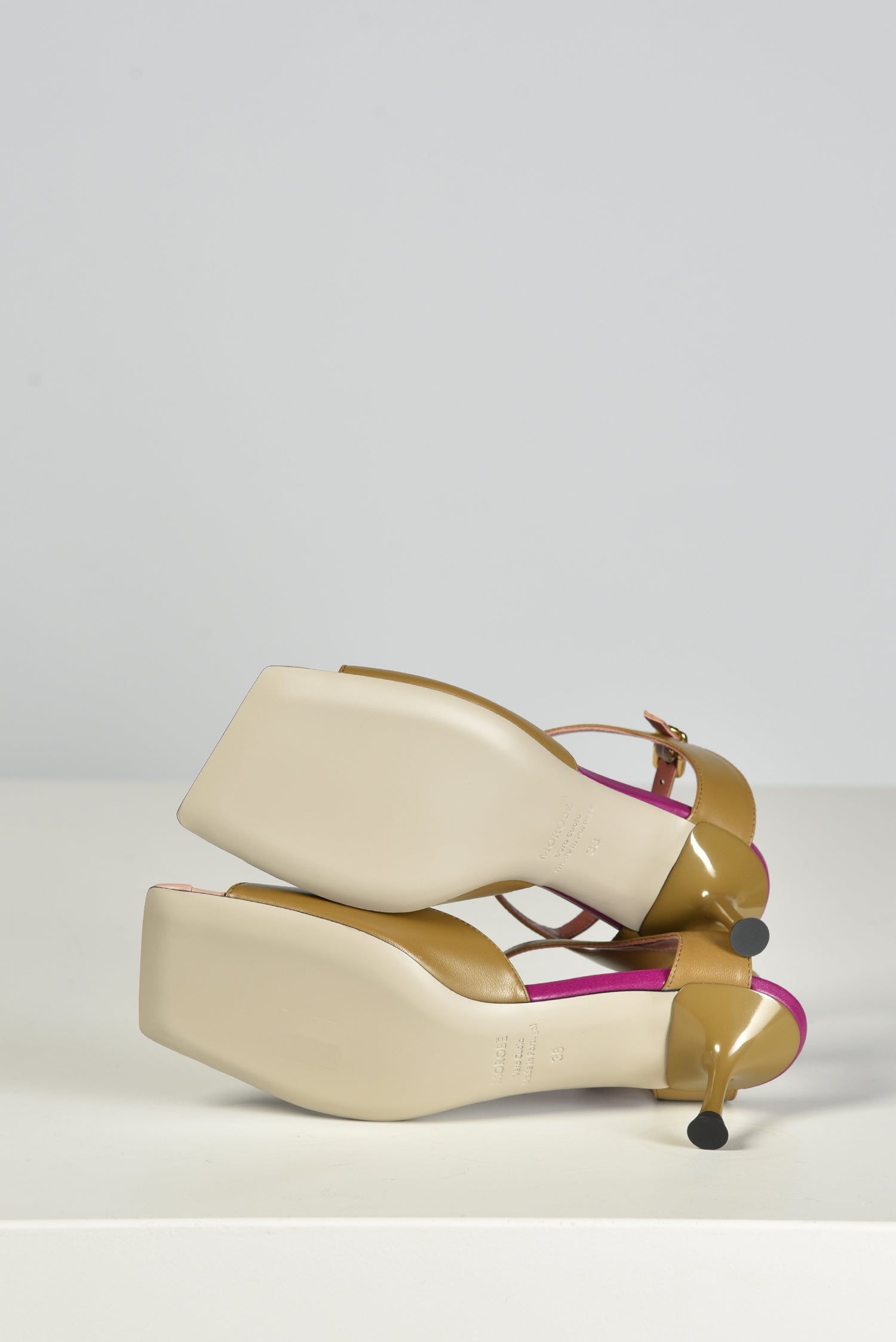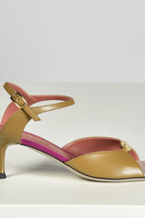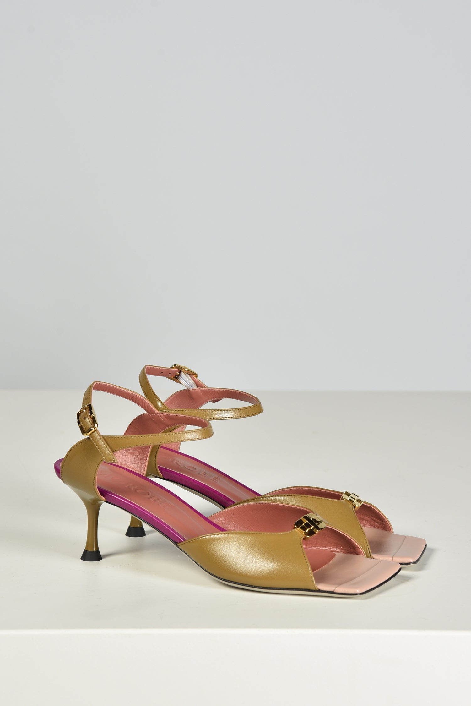 De sandalen Grace groen van Morobe vallen direct op door hun kleurspel van goudbruin, fuchsia en zachtroze. De vierkante neus en de smalle leren bandjes geven het ontwerp een moderne, luchtige vorm. Het gladde leer voelt soepel aan en laat de rijke kleur sweet olive tri mooi uitkomen. De slanke hak heeft een subtiel uitlopende basis, wat zorgt voor een stabiele pasvorm zonder dat het ontwerp zijn elegante lijn verliest. Elk detail draagt de handtekening van Morobe: zorgvuldig gemaakt met oog voor vorm en materiaal. Combineer ze met de Morobe sandalen Grace Logo 101 chocolat voor een stijlvolle contrastset.