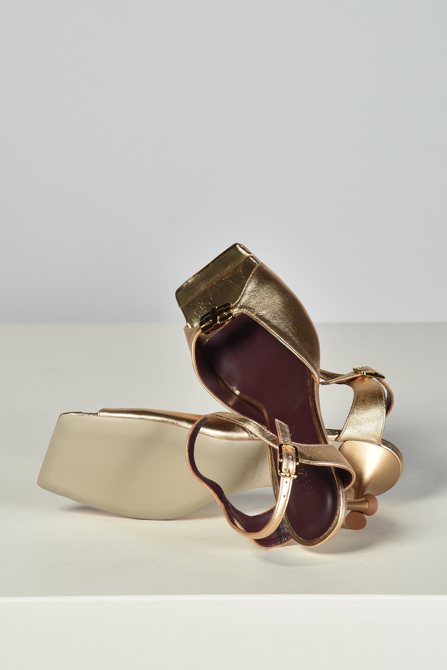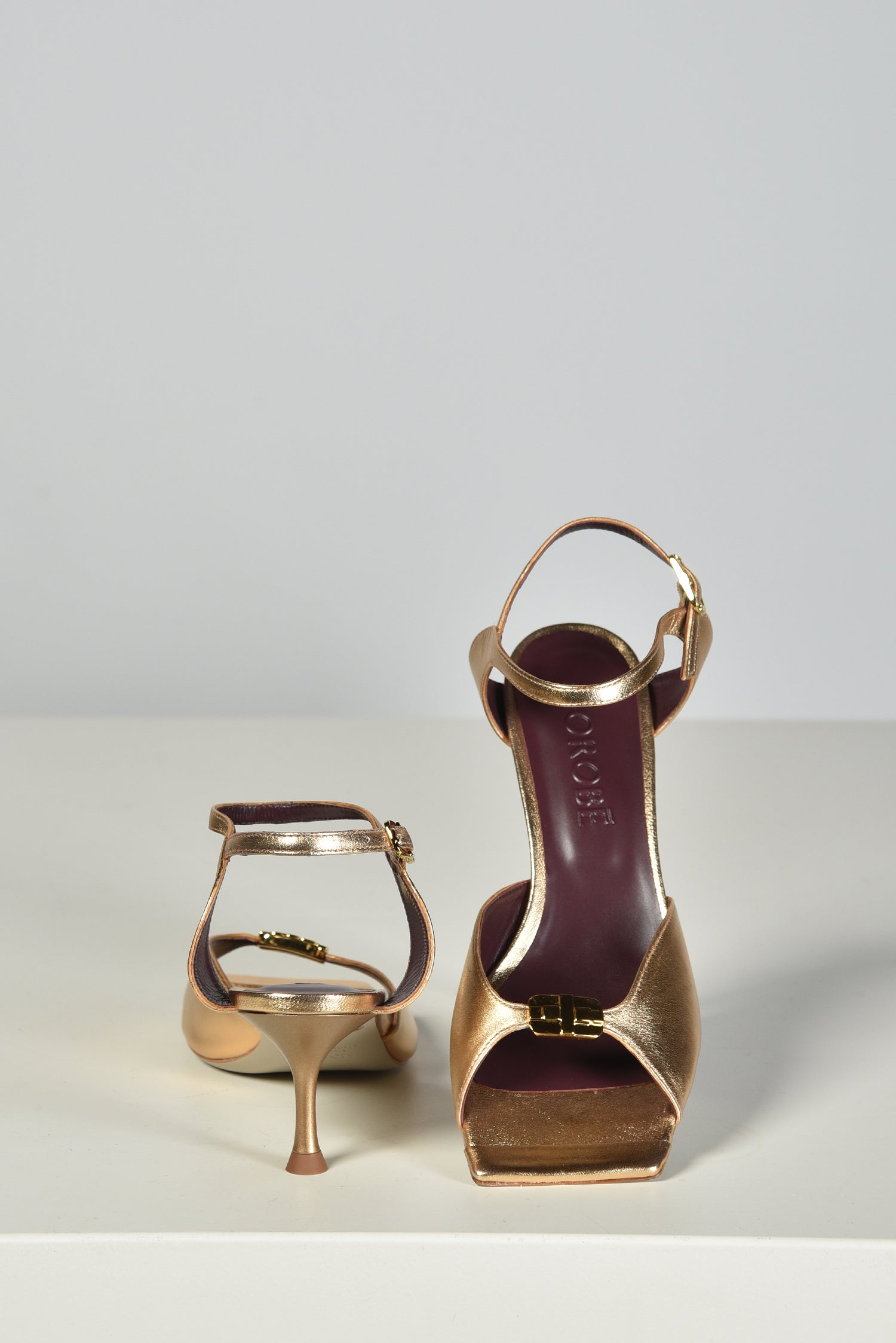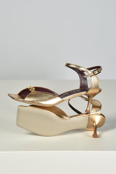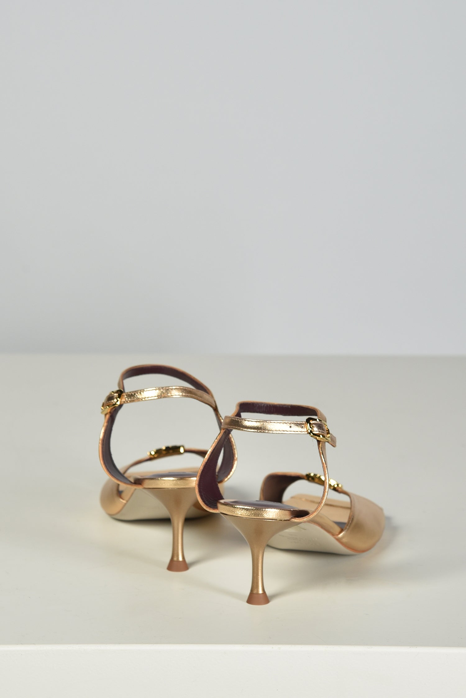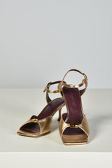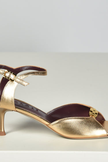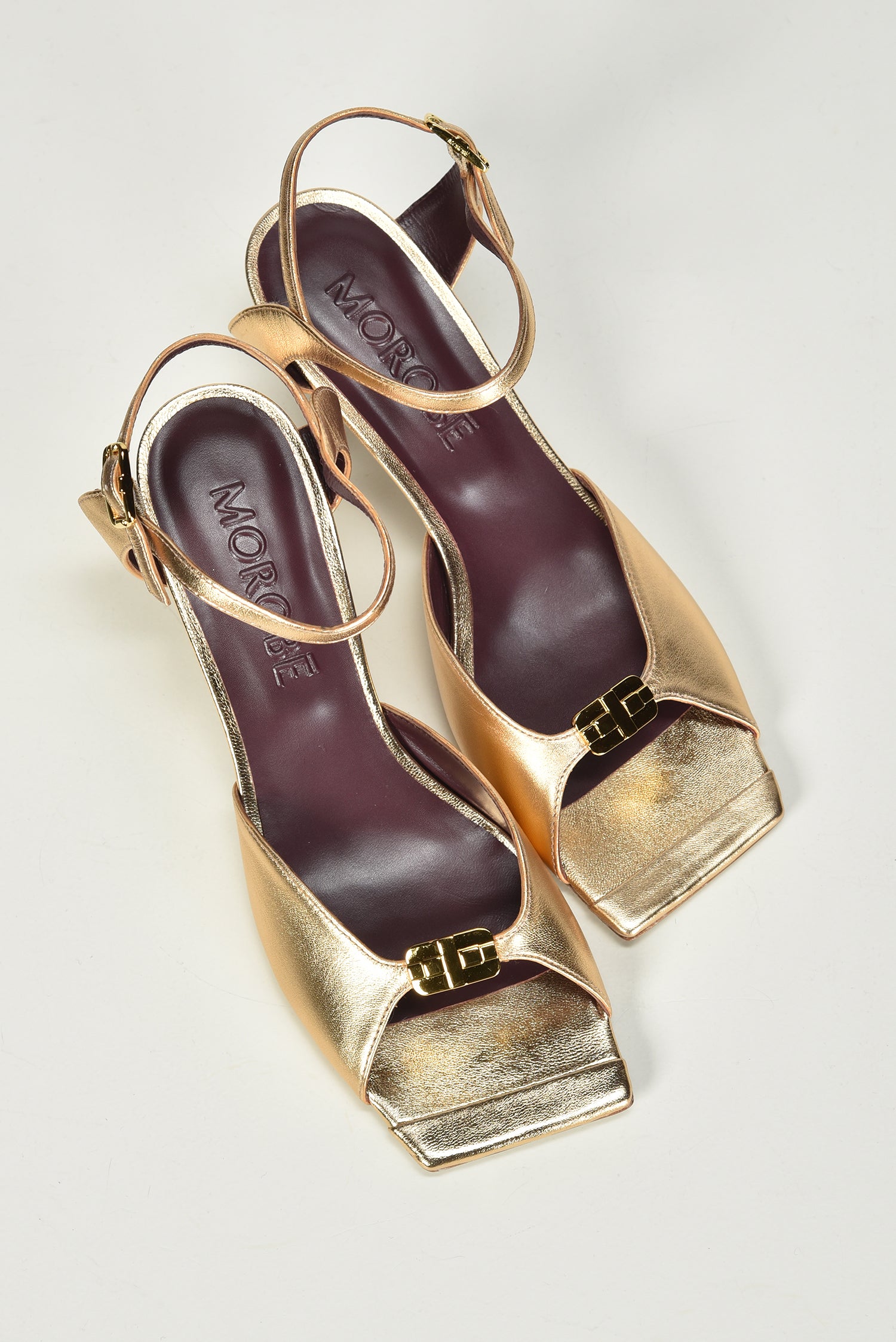 Morobe metallic leren sandalen Grace met hak en Logo in soft gold