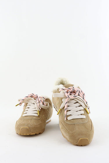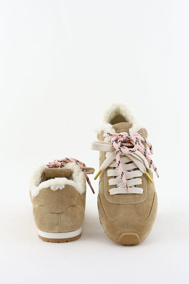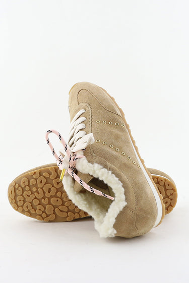 Nubikk sneakers Billy Lou Fur gevoerd met bont en studs als details beige
