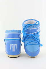Gave laarzen van het merk Moon Boots, model Icon Low Nylon in kleur blauw. De boots zijn voorzien van een ingebouwde hak van 4 cm. De boots zijn van binnen volledig gevoerd, waardoor ze perfect zijn voor de winter. Ze hebben een normale pasvorm.