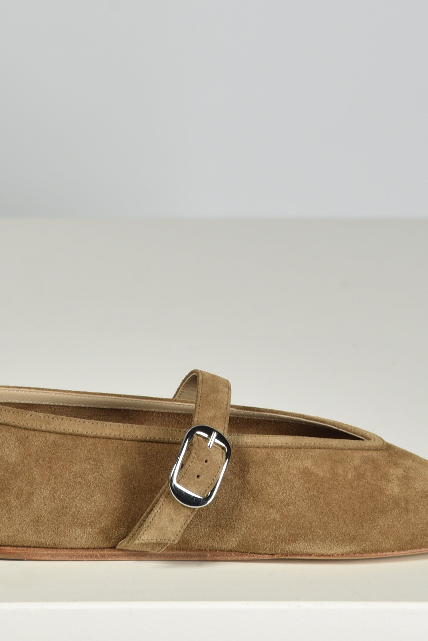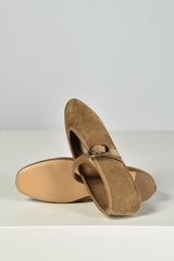 De suede ballerinas Stella van Le Monde Beryl hebben een frisse, vierkante neus en een brede band met zilverkleurige gesp. De taupe tint geeft een rustige, warme uitstraling die bij veel stijlen past. Het zachte suede vormt soepel om de voet en voelt stevig maar toch comfortabel aan. Deze ballerina’s vallen normaal op maat en zijn met de hand afgewerkt in Italië. Le Monde Beryl staat bekend om zijn aandacht voor traditionele technieken en pure vormgeving. Dit paar laat dat mooi zien: elegant in eenvoud, met doordachte details die elke stap bijzonder maken.