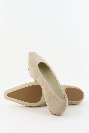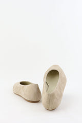 Ik laat je graag de ballerinas Bilbao suede beige van Odare zien. De soepele suède voelt licht aan en volgt de voet zonder te knellen. De spits gevormde neus geeft het model een strakke lijn, terwijl de ultradunne zool een bijna vloeiende stap geeft. De egaal lichtbeige kleur, ook wel camoscio taupe genoemd, houdt het geheel rustig en helder. Ze vallen normaal op maat, dus je eigen maat werkt hier het best. Odare werkt met kleine Italiaanse ateliers die veel aandacht geven aan vorm en materiaal, en dat merk je meteen aan deze ballerina’s.
