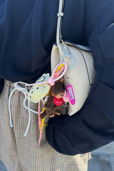 Shouia is een creatief accessoireslabel uit Parijs dat gespecialiseerd is in bag charms en sleutelhangers die elke tas direct meer karakter geven. De ontwerpen zijn geïnspireerd op de energie en nostalgie van de jaren tachtig en negentig, herkenbaar aan de speelse kleuren, verrassende combinaties en vrolijke details. Elk charm bestaat uit zorgvuldig gekozen bedels, zachte koordjes en fijne accenten die samen een charmante mix vormen van expressie en stijl.