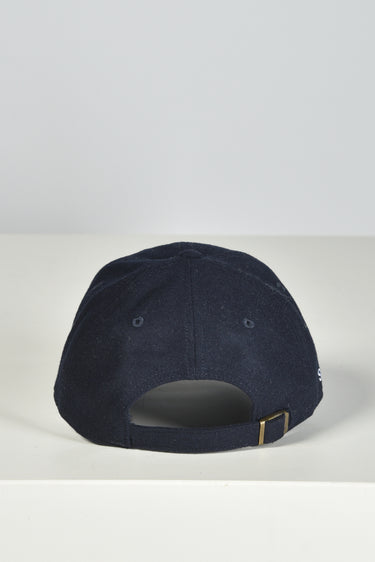 Hier zie je de cap Yankees Serif Wool van Sporty and Rich. De pet heeft een diepe donkerblauwe kleur die meteen rustig oogt en ruimte geeft aan het grote witte NY logo voorop. De stof voelt stevig door de mix van wol en polyester, waardoor de kap een mooie vorm houdt. Aan de zijkanten vallen de kleine witte logo’s op, subtiel maar duidelijk aanwezig. De geborduurde tekst langs de klep geeft net wat extra detail zonder te overheersen. Sporty and Rich staat bekend om simpele en slimme ontwerpen met een luxe randje, en dat zie je hier meteen terug.