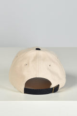 Hier zie je de cap Yankees Serif Wool beige van Sporty & Rich. De lichte bovenkant in ecru ligt mooi tegen de zwarte klep, waardoor de vorm meteen helder oogt. Het grote zwarte NY logo staat stevig middenvoor en geeft de cap een duidelijke focus. Aan de zijkant zie je de naam van het merk subtiel verwerkt. De wolmix voelt stevig en licht tegelijk, fijn voor dagen waarop je wat extra warmte wilt zonder dat het zwaar wordt. Sporty & Rich staat bekend om simpele en slimme designs, en dat merk je hier aan de strakke lijnen en het rustige kleurgebruik. Een cap met een klassieke vorm die duidelijk laat zien waar hij vandaan komt.