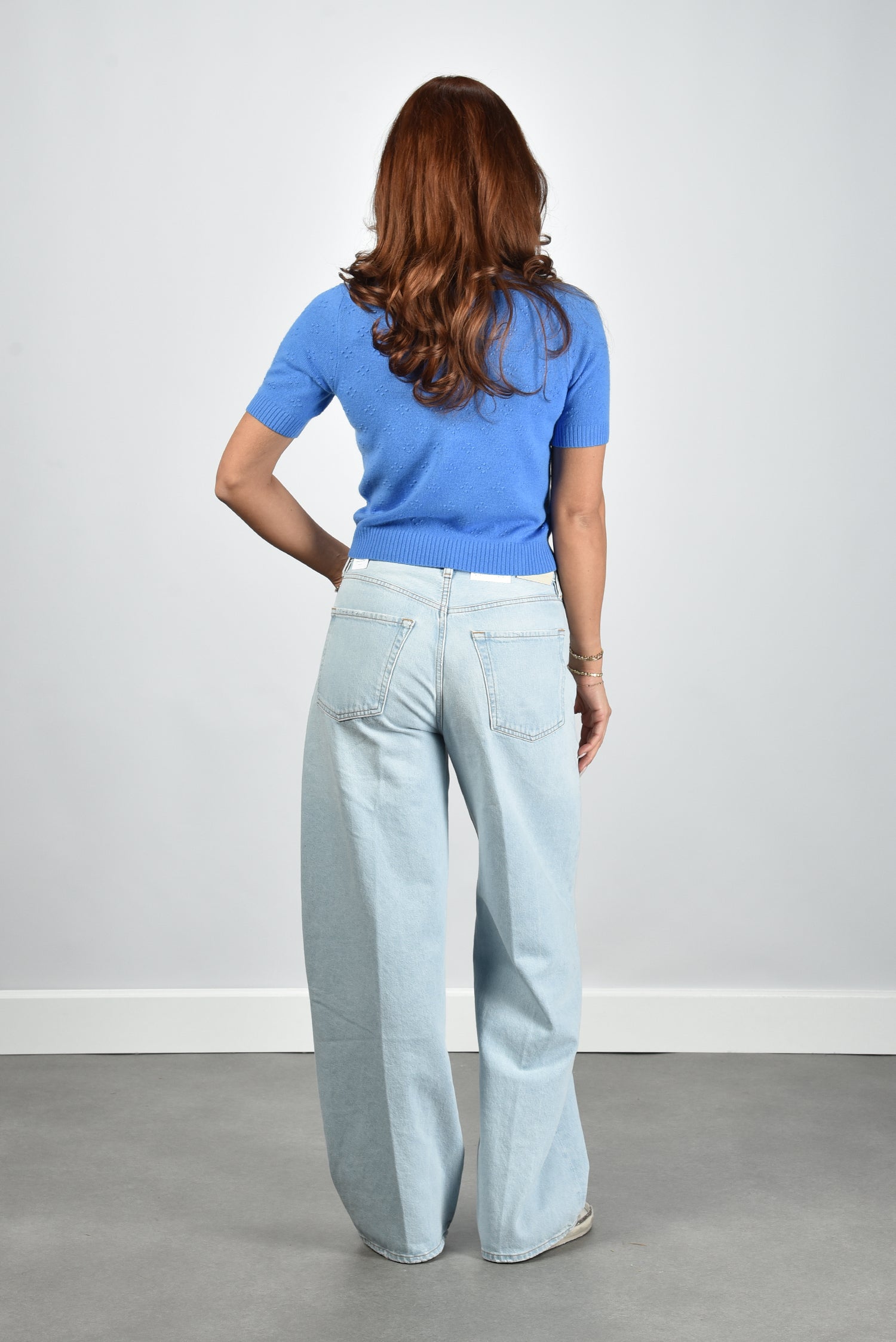 Guest In Residence cropped trui Compass Sweater met korte mouwen blauw