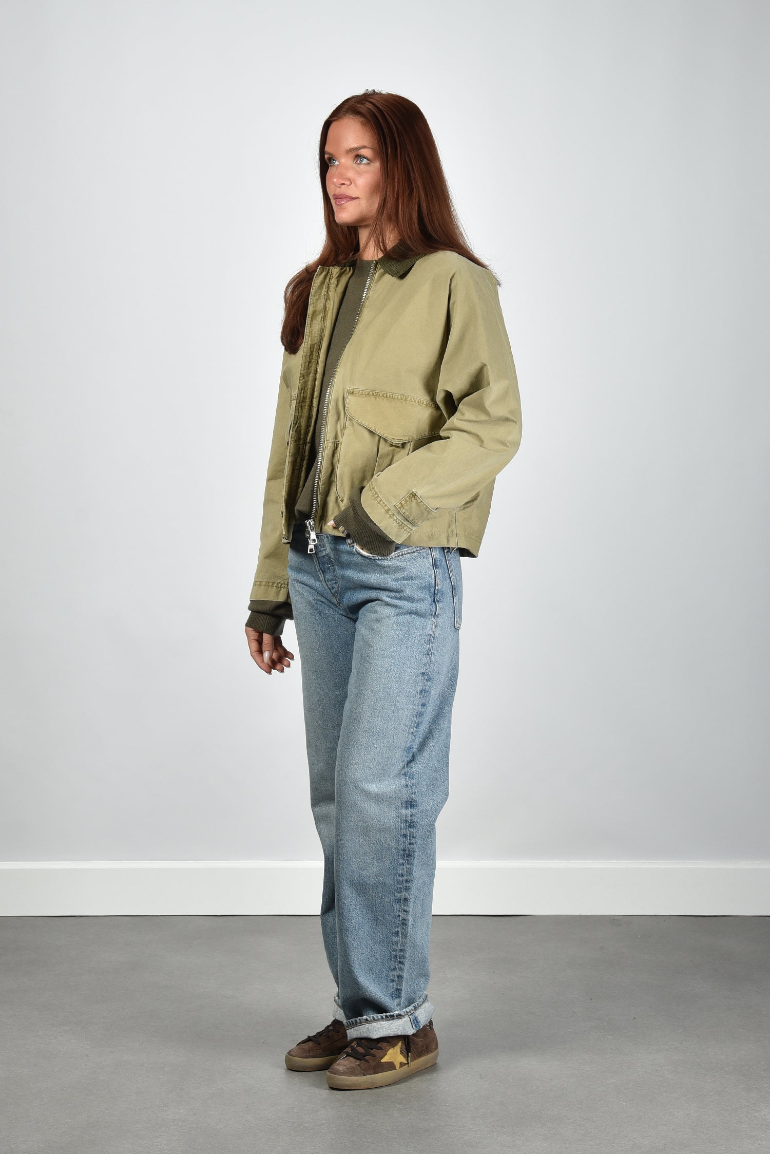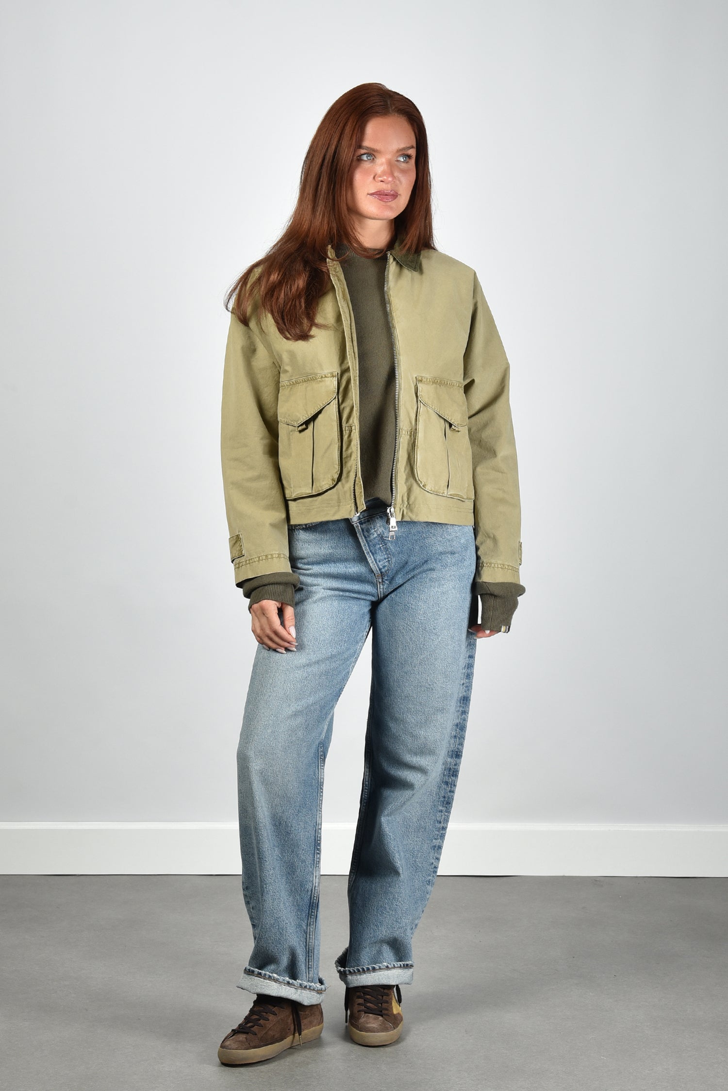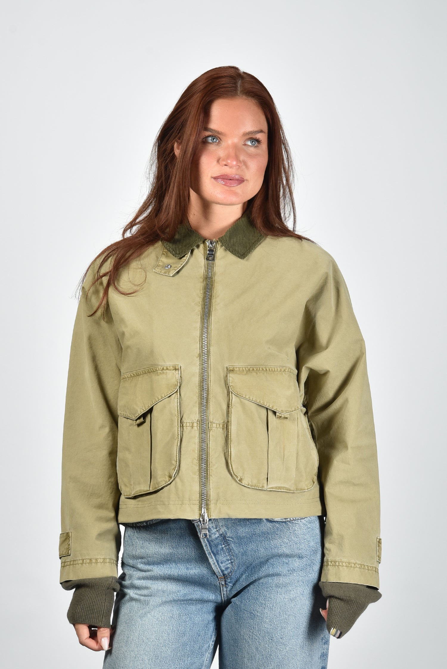 Blonde no.8 cropped jas Indal C met ritssluiting groen