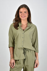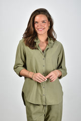 Zie hier de Xirena blouse Beau in Dark Seagrass, vervaardigd uit 100% katoen. Deze blouse biedt een normale pasvorm en is perfect voor zowel casual als formele gelegenheden. Het model Lise draagt maat M en heeft een lengte van 1,73m. Artikelnummer: X5CTP111-DKSG-Dark Seagrass.