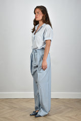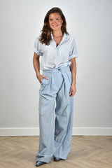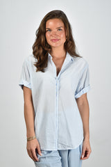 Zie hier de Xirena blouse Channing in Skylight blauw. Deze elegante blouse, vervaardigd uit 100% katoen, biedt een normale pasvorm en is ideaal voor diverse gelegenheden. Koud wassen aanbevolen om de kwaliteit te behouden. Lise draagt maat M bij een lengte van 1,73m. Artikelnummer: X5CTP114-SKYL-Skylight.