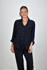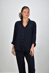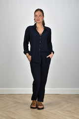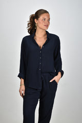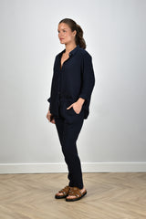 Zie hier de Xirena blouse Scout in North Star blauw, vervaardigd uit 100% katoen voor een luchtige draagervaring. Dit model biedt een normale pasvorm en is ideaal voor zowel casual als formele gelegenheden. Lise draagt maat M bij een lengte van 1,73m. Artikelnummer: X5CHG005.