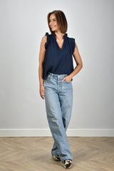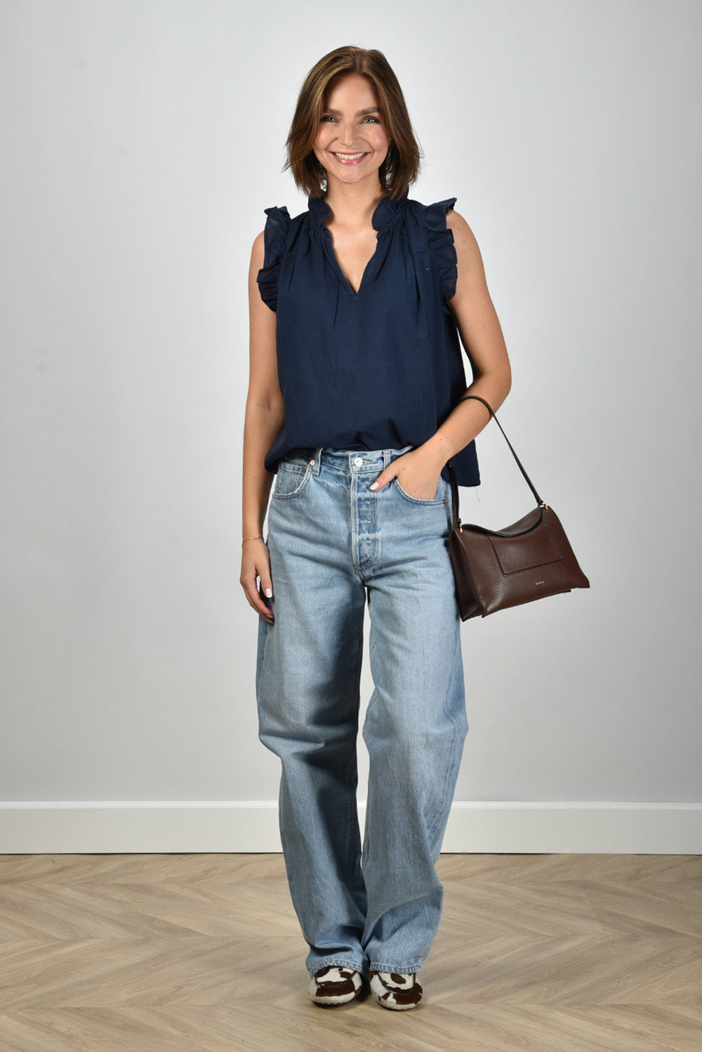 Ons model Esmee is 1,74m en Esmee heeft maat 36/S/25. deze top valt normaal op maat