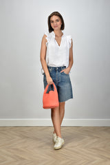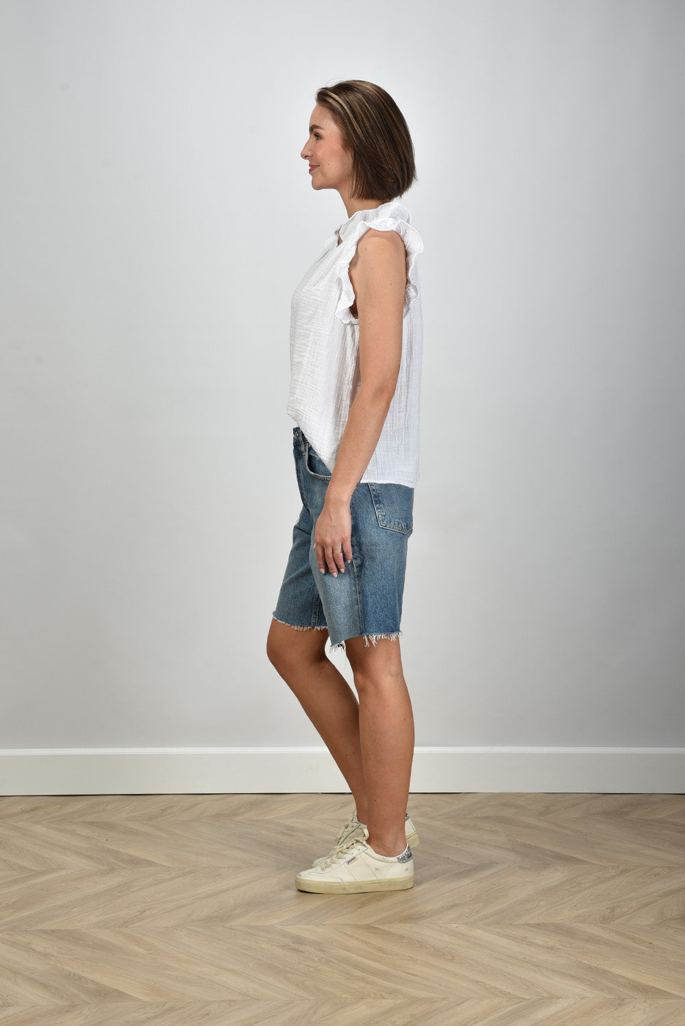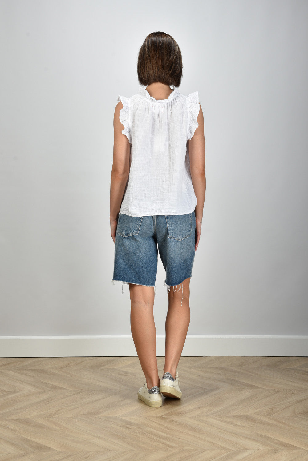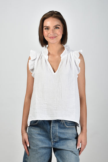 Xirena mouwloze top Bex met v-hals en volantmouwen wit