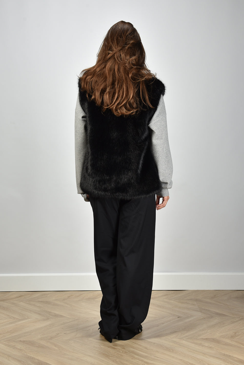 Our model Lise is 1,73m and Lise heeft maat 36/S/27. dit gilet heeft een normale pasvorm