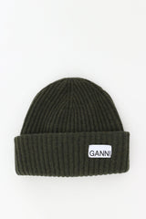 Ganni hat with embroidered logo green