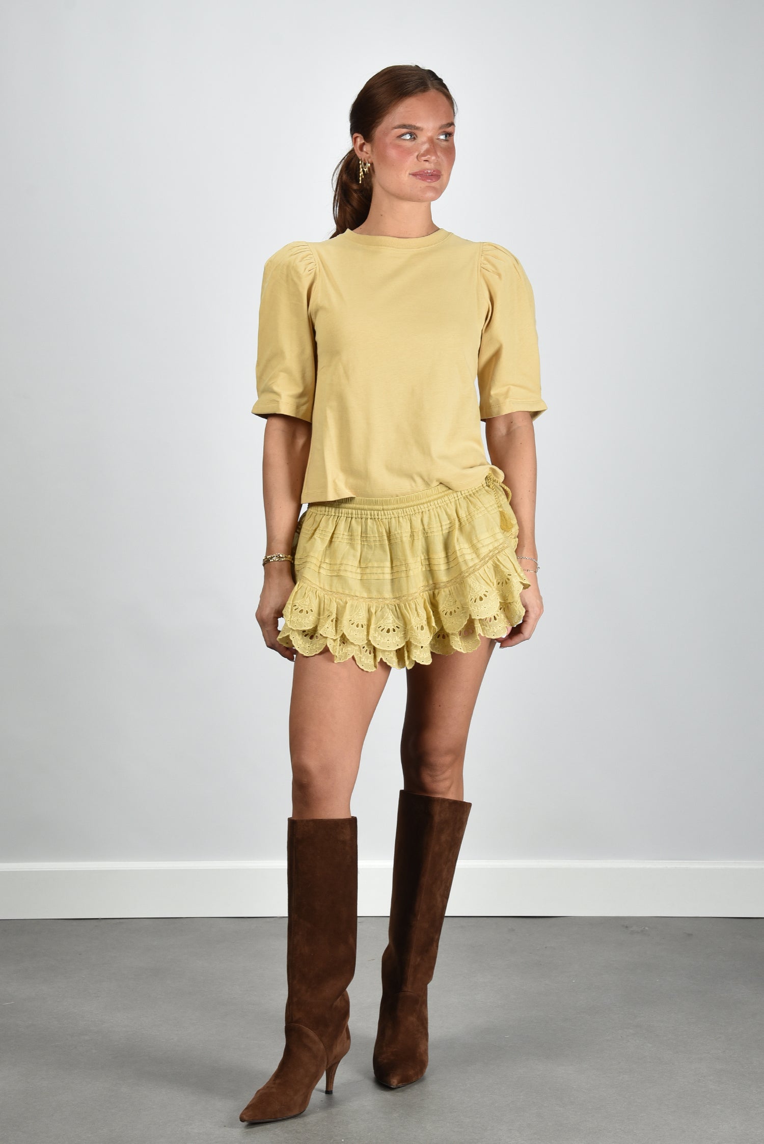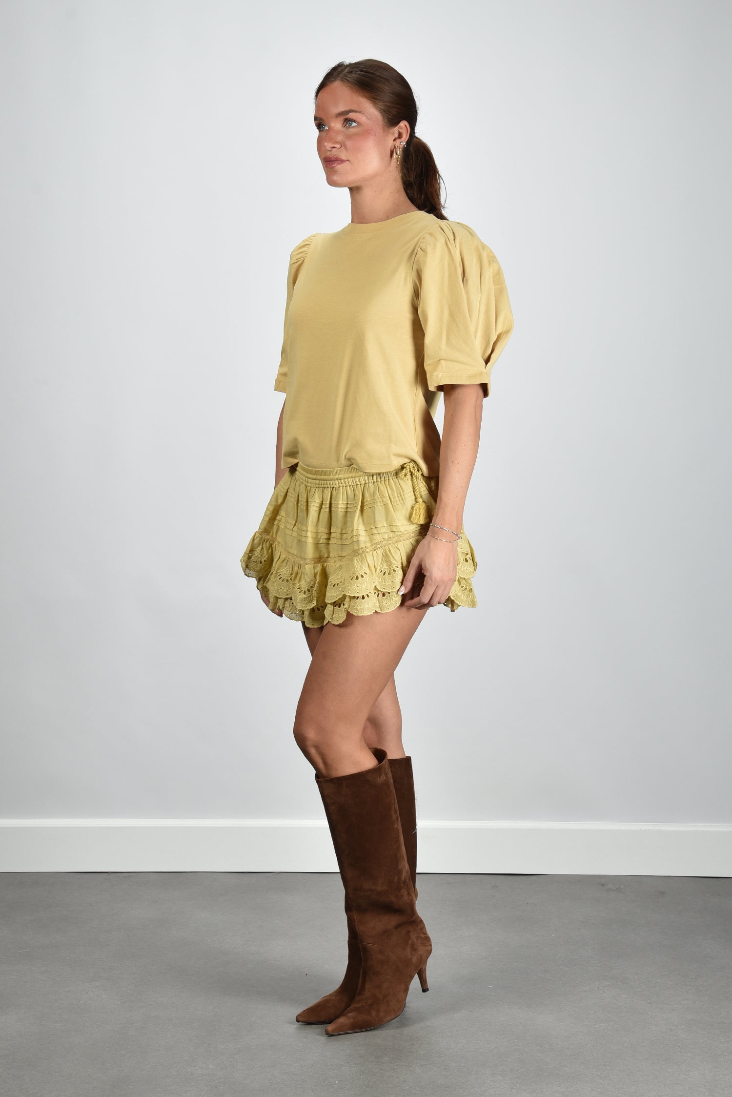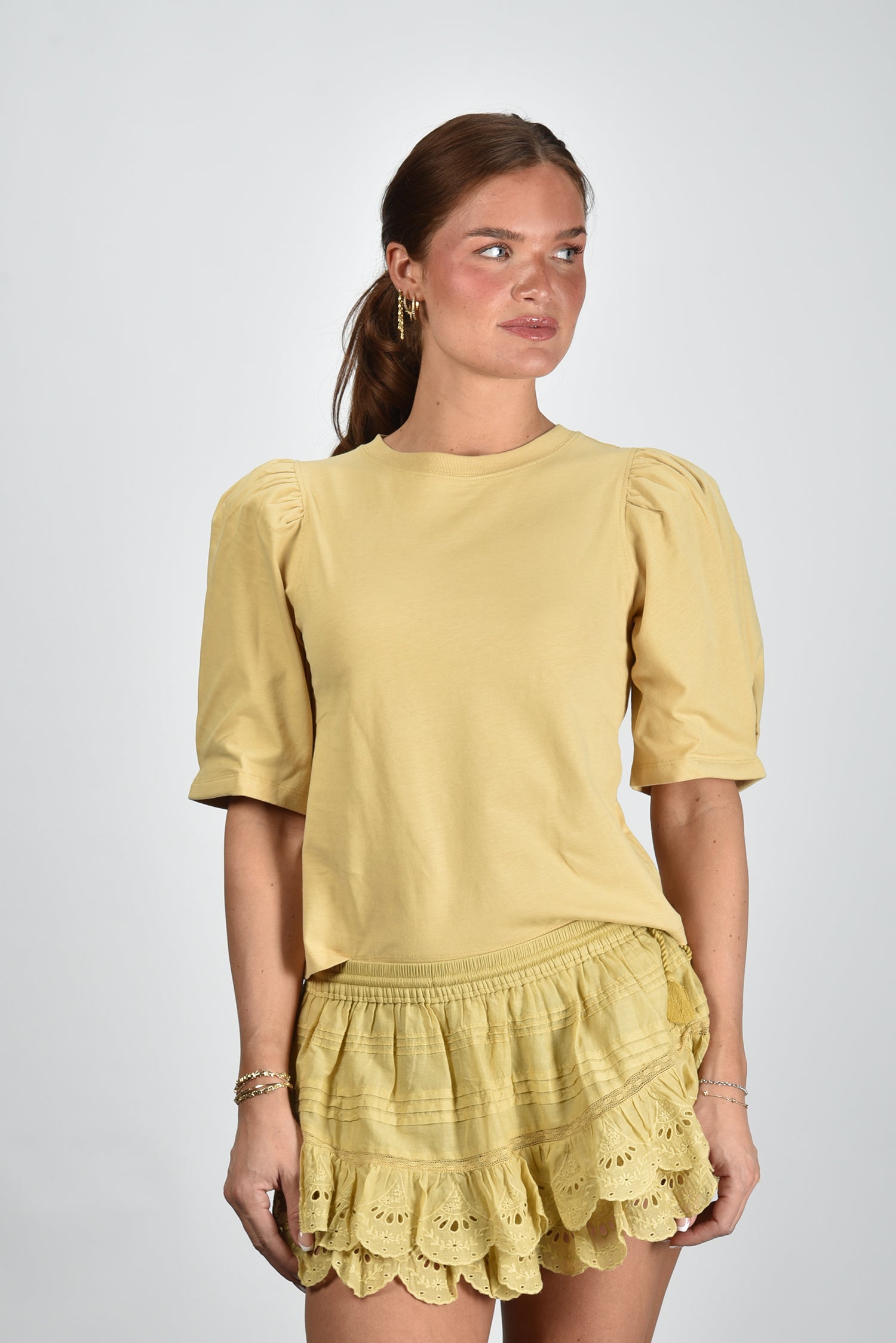 Isabel Marant t-shirt Maeliss met pofmouwen dusky yellow
