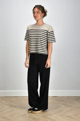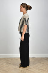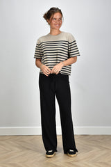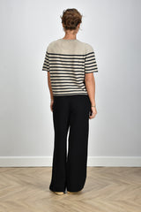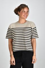 Behold the Lisa Yang sweater Cila in Sand/Ink Stripes, crafted from 100% cashmere for ultimate comfort. This product has a regular fit and is ideal for various occasions. Model Lise wears size M and is 1.73m tall. Hand wash recommended. Article number: 2024072-AI-Sand/Ink Stripes.