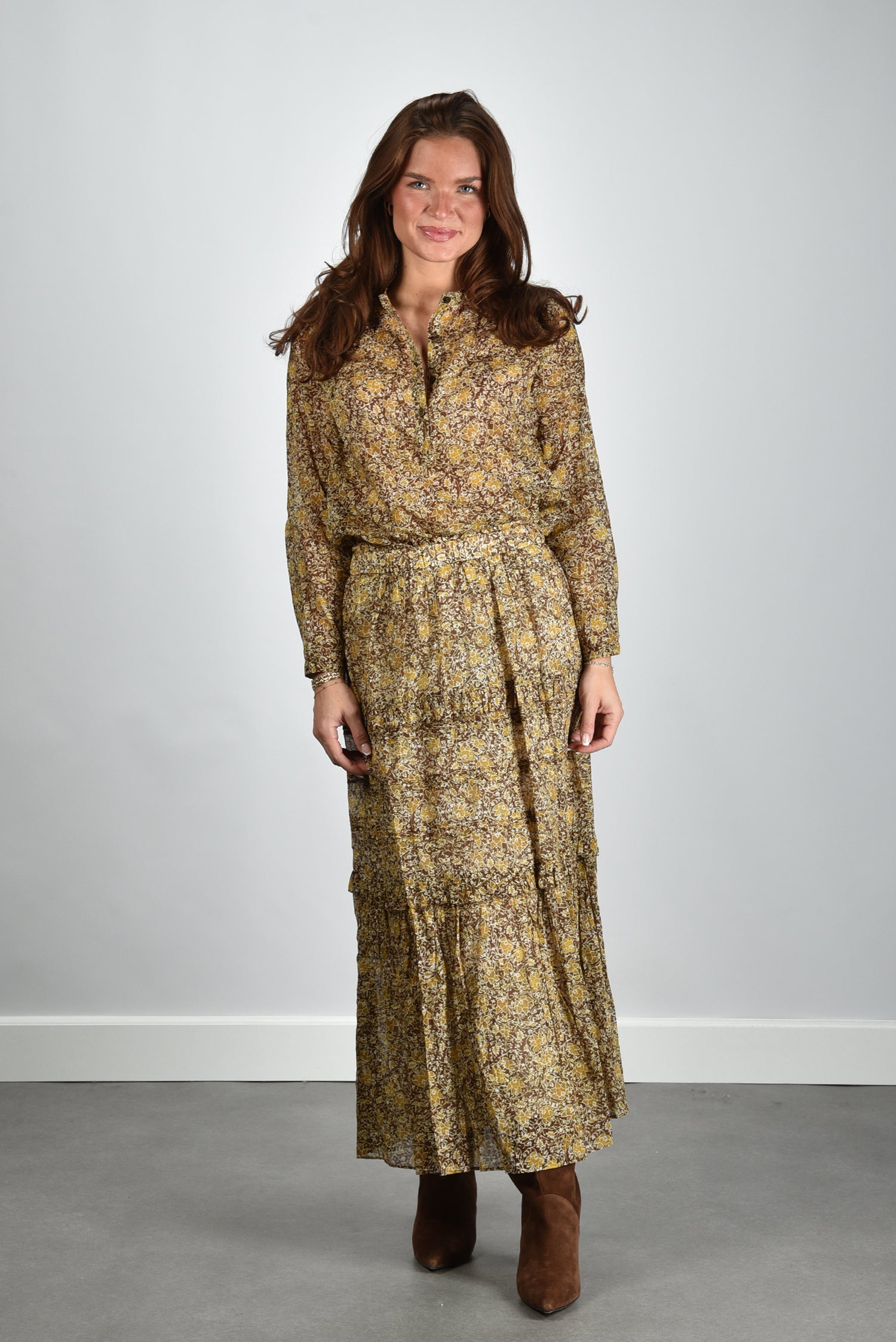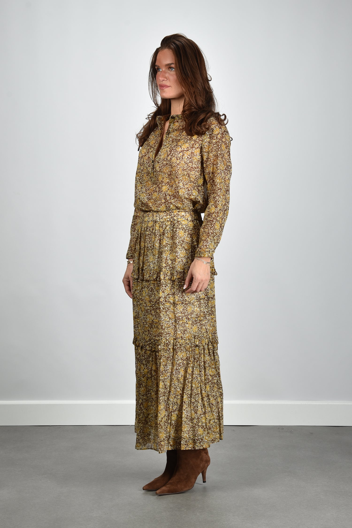 Our model Lise is 1,73m and Lise heeft maat 36/S/27. Deze blouse valt normaal op maat, we adviseren je je eigen maat te bestellen.
