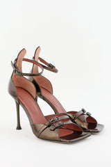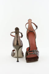 Here you see the Morobe sandals Abbie 03 bronze, made of high-quality metallic leather. These elegant sandals have a heel height of 10 cm and offer a normal fit. For optimal care, use metallic spray. Article number: Abbie 03-Bronze Specchio.
