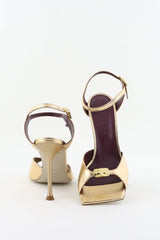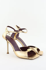 Here you can see the Morobe sandals Mimi 94 in Soft Gold, made of metallic leather. These elegant sandals with a heel height of 10 cm offer a normal fit and are perfect for both formal and informal occasions. Maintenance easy with metallic spray. Article number: Mimi 94.
