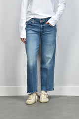 De jeans Mid Rise Maven Ankle all your eggs in one basket van Mother heeft een ontspannen wide-leg fit met een mid-rise taille. De denim voelt soepel door de mix van katoen, lyocell en een vleugje stretch. Zo blijft de stof stevig maar toch comfortabel. De lichte wassing geeft deze jeans zijn eigen karakter, precies zoals je het van het Californische denimmerk Mother kent. Combineer hem met het Ami Paris t shirt ADC Ts Ml Rouge BFUTS235.724 blanc voor een frisse, ontspannen outfit. Deze jeans valt normaal op maat, dus je kunt gewoon je eigen maat kiezen.