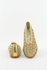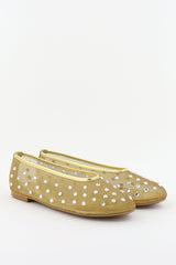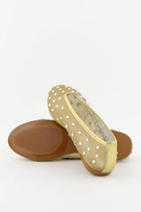 Behold the Toral ballerinas mesh gold, a refined choice for any occasion. Made from high-quality mesh and metallic leather, these shoes offer both style and comfort. The fit is normal according to Toral's design. Maintenance with Carbon Pro is recommended. Article number: TL-SYBILLA-Mesh-Oro/Oxido.