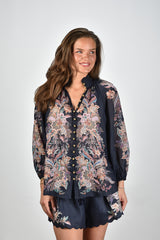 Zimmermann blouse Rhiannon Billow met knoopsluiting en lange mouwen blauw