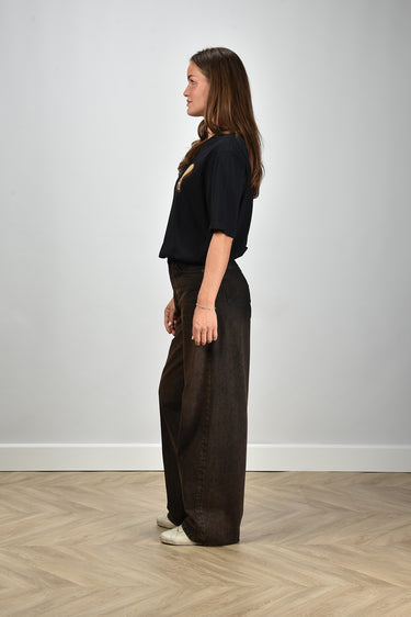 Our model Lise is 1,73m and Lise heeft maat 36/S/27. Dit T-shirt valt normaal op maat