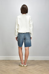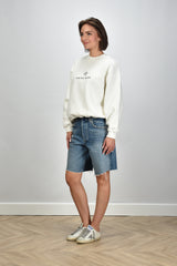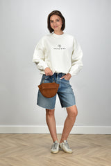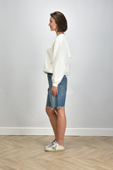 Our model Esmee is 1,73m and Esmee heeft maat 36/S/25. Deze trui heeft een normale pasvorm