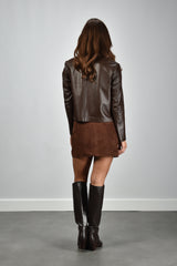 Our model Lise is 1,73m and Lise heeft maat 36/S/27. Deze jas valt normaal op maat, we adviseren je je eigen maat te bestellen.