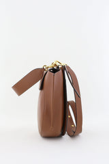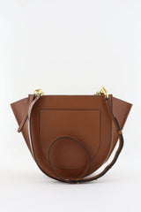 Beautiful handbag by Wandler, model Hortensia Medium, in cognac with gold details. The short and long handle, of approximately 108 cm, are removable. Furthermore, the handbag has a magnetic closure, a zip pocket on the back and an open pocket on top. The size is 35 x 23 x 8 cm.