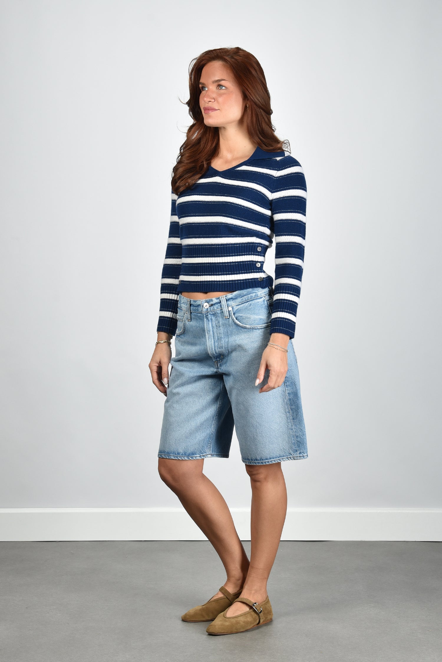 De shorts Court cupid van Citizens of Humanity hebben een ontspannen snit met halflange, wijde pijpen in een lichte blauwtint. De soepele stof van katoen en lyocell voelt stevig maar glad aan, geschikt voor warme dagen. De zichtbare knoop- en ritssluiting geeft het model een nonchalante uitstraling. De korte broek heeft nette steekzakken die het ontwerp praktisch maken zonder aan stijl in te leveren. Citizens of Humanity staat bekend om zorgvuldig gekozen materialen, waardoor ook deze shorts lang mooi blijven. Draag ze met de jas Bay 4000 navy van Blonde no.8 voor een lichte, zomerse combinatie.