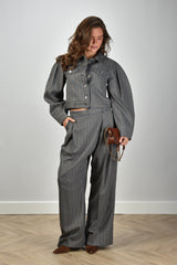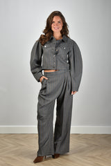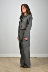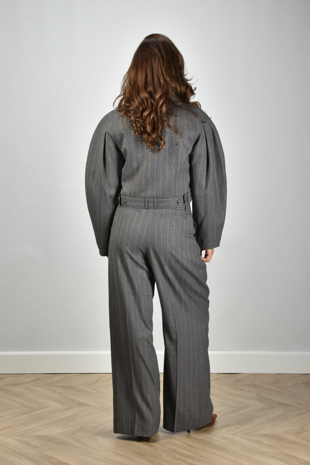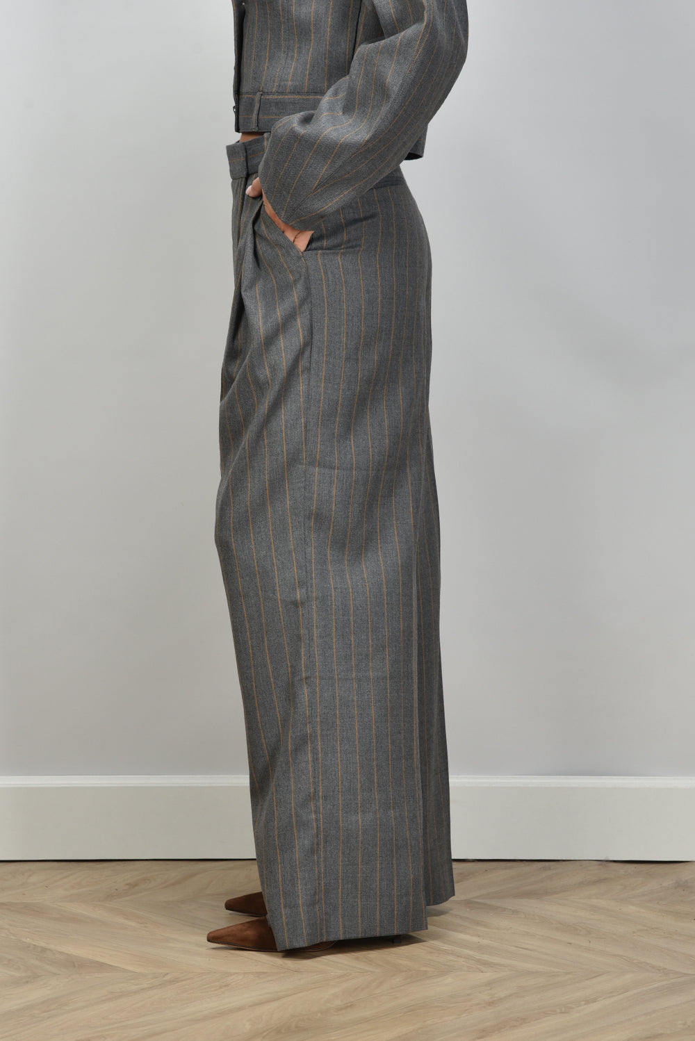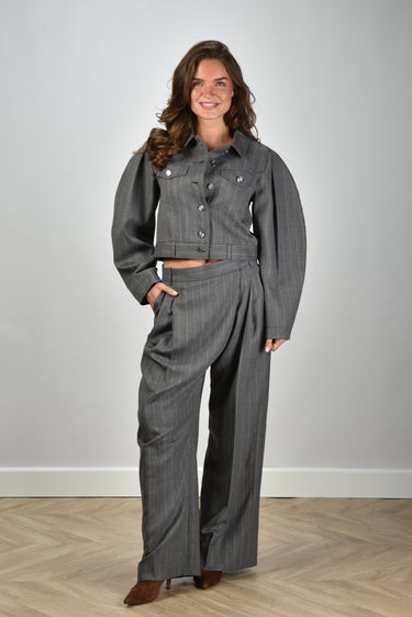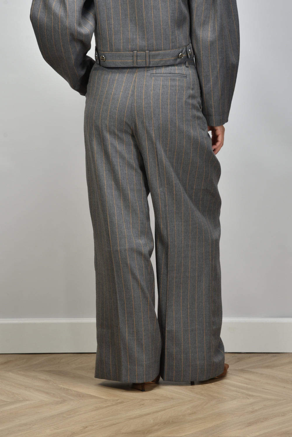 Ganni broek Grey Stripe Cross-over W0761 grijs