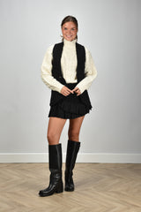 Our model Lise is 1,73m and 36/S/27. Dit gilet valt normaal op maat, we adviseren je je eigen maat te bestellen.